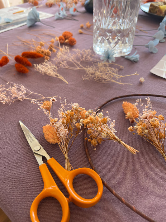 ATELIER COURONNE DE TÊTE DE FLEURS EN PAPIER ET SÉCHÉES - RÉSERVATION