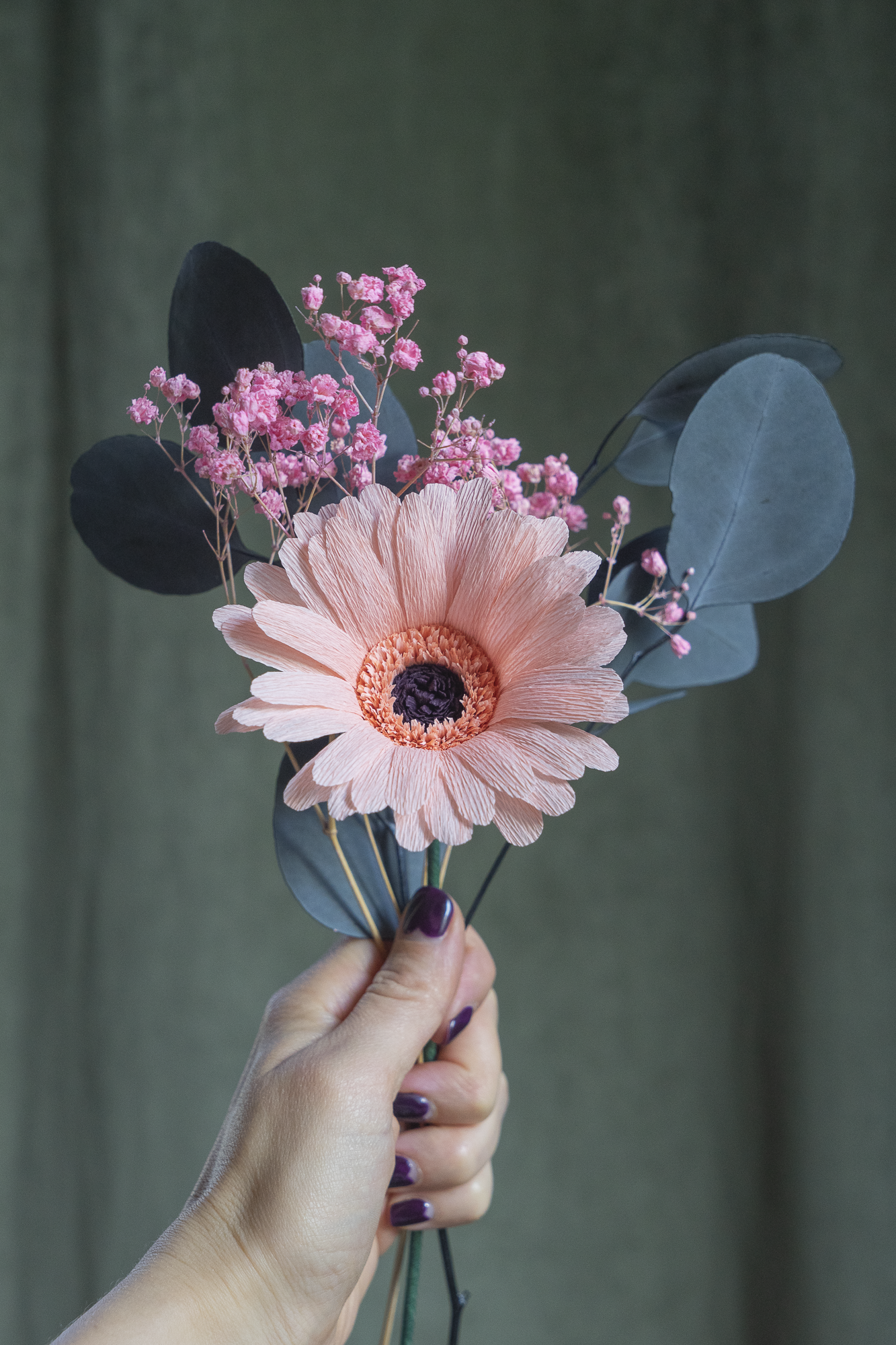 - Les fleurs sont composées de papier et papier crépon et d'un fil métallique pour les tiges. Chaque bouquet est agrémenté de fleurs et feuillages stabilisé.e.s. Il est parfois possible que certaines variétés soient remplacées par d’autres en cas de rupture de stock.