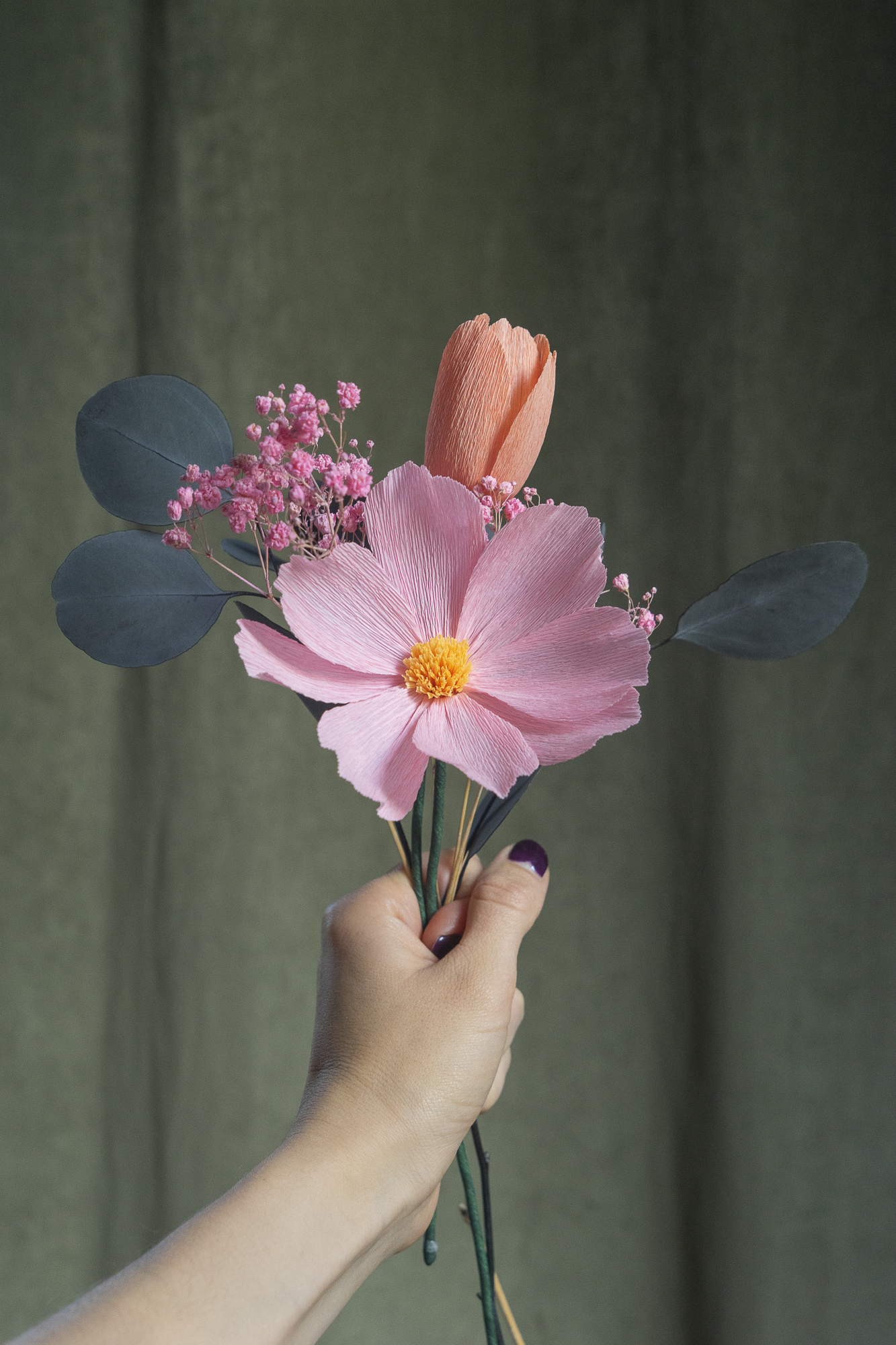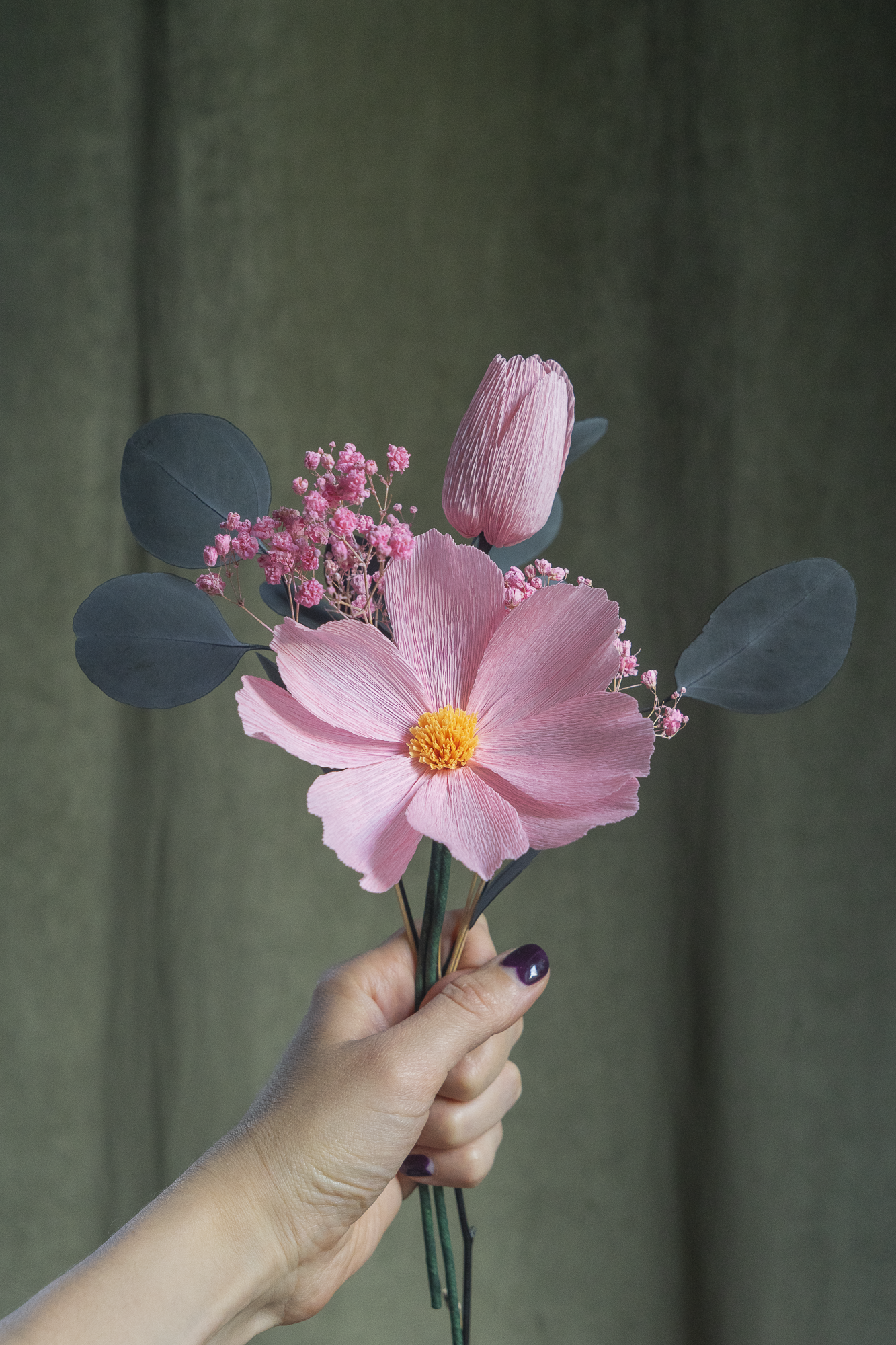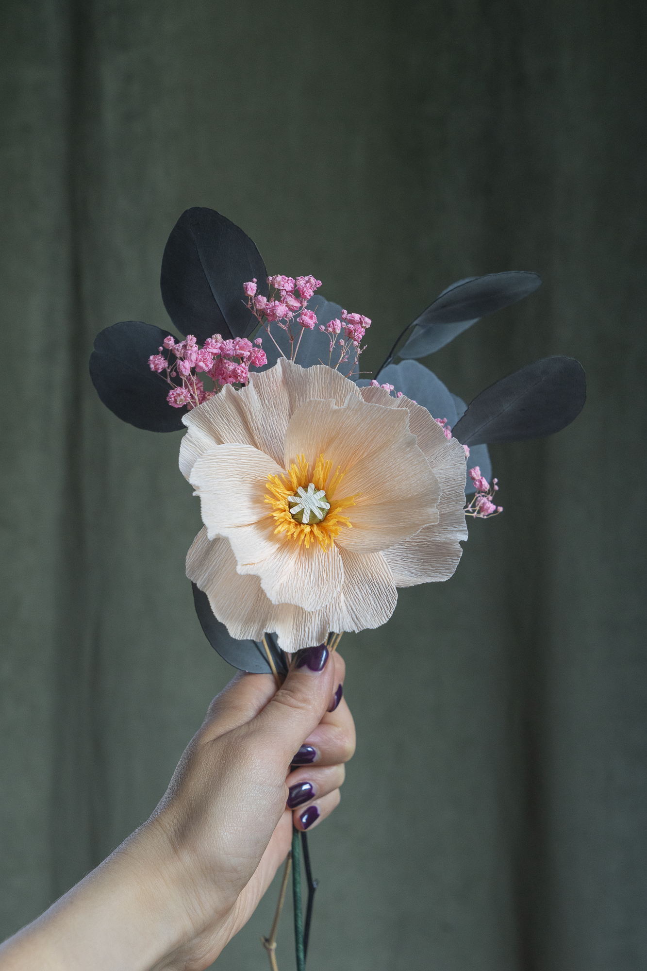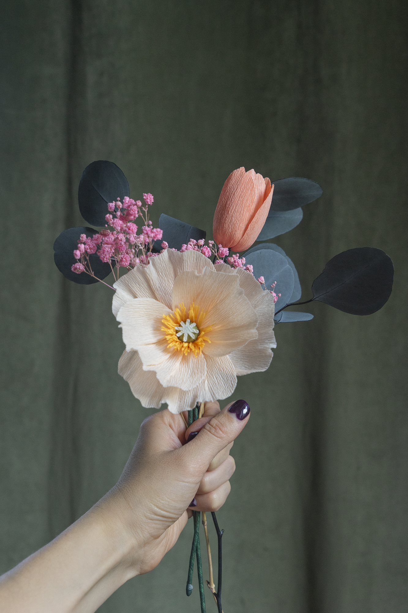 La Collection de Bouquets Pastel Rose Orangé viendra égayé votre intérieur ou celui de l'heureux élu ! Pavots, Cosmos, Tulipes...toutes ces fleurs en papier sont accompagnées de gypsophile séché et d'eucalyptus stabilisé. Ils offrent un bouquet trompe l'oeil, d'une durée éternelle !
